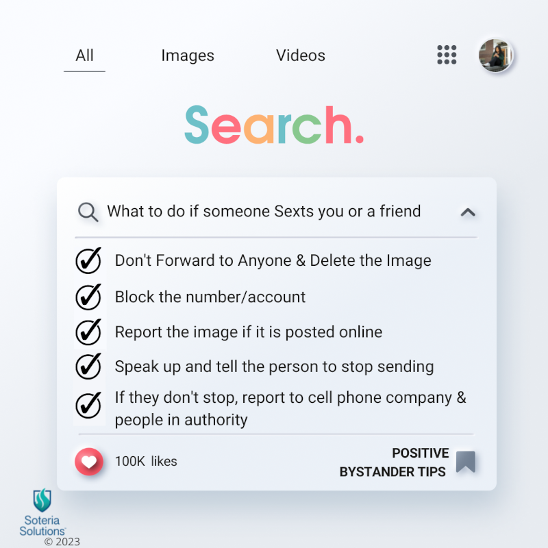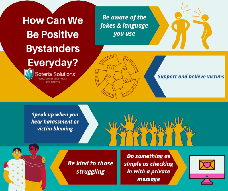 Multiple images to maintain awareness of how to be a prosocial bystander every day.