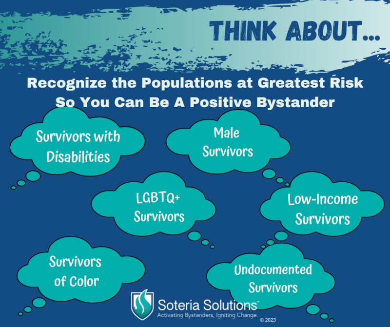 Two slides to help recognize the populations at greatest risk so you can be a proactive bystander.