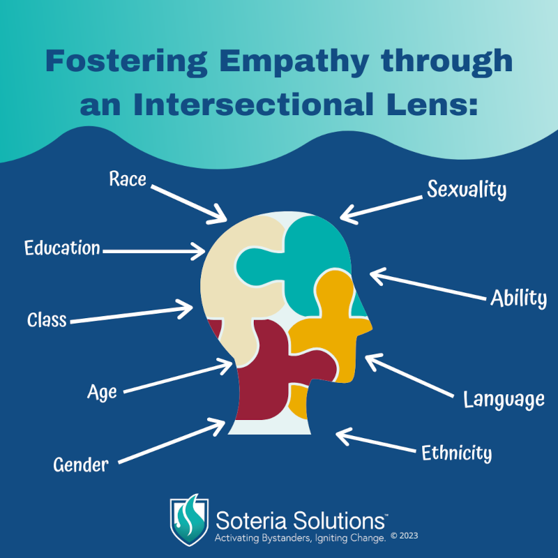 These images help bystanders understand how intersectionality (race, gender, age, education, class, ability, sexuality, ethnicity and language) may affect behaviors.